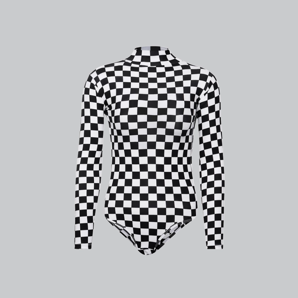 بادی آستین بلند شطرنجی رو با یه شلوار جین ساده بپوش.