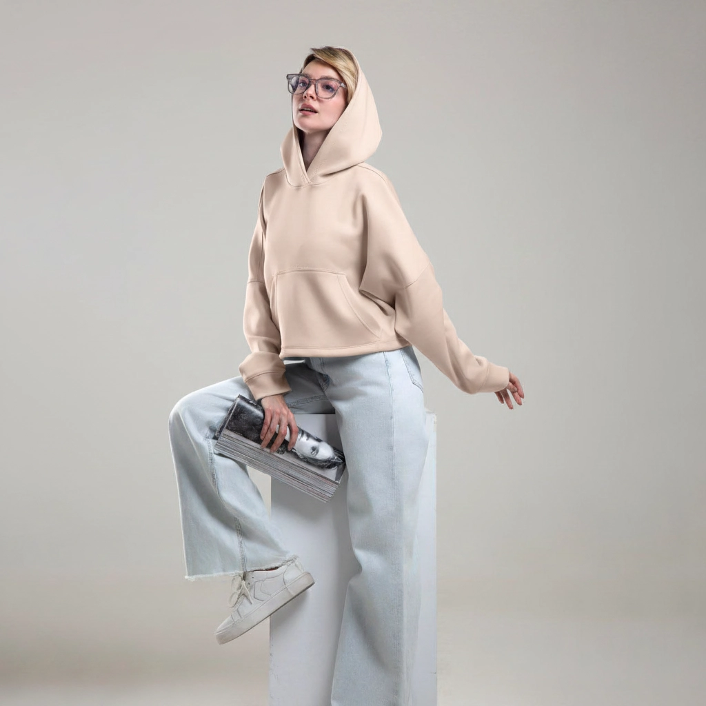 هودی زنانه کراپ بهبود: استایل ترندی با ایستایی عالی (جنس غواصی)