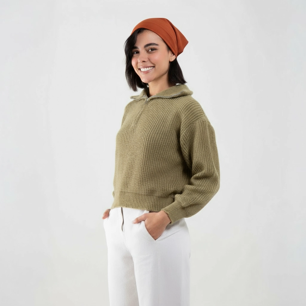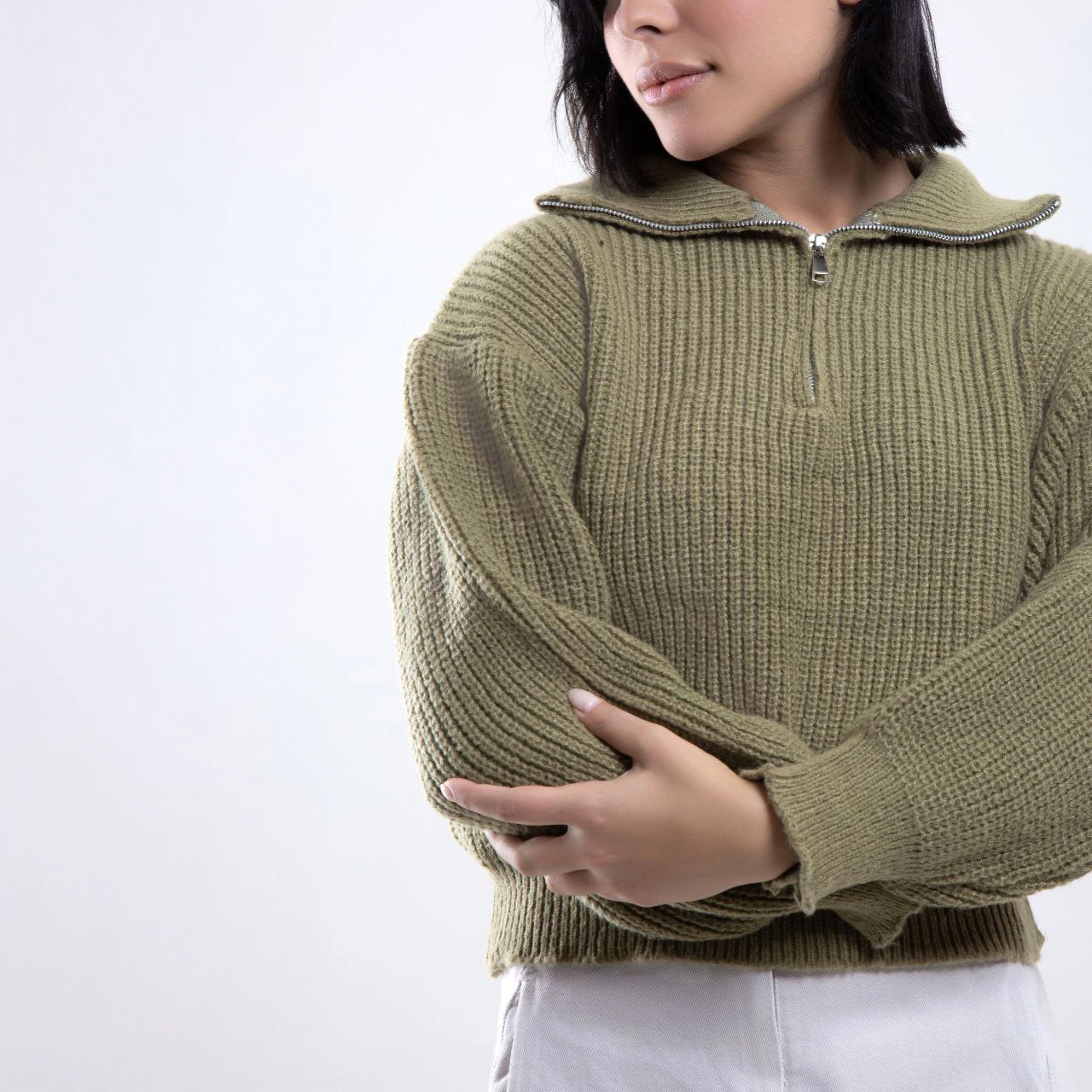 مدل: نیمزیپ (Half-Zip)؛ یک ترند محبوب در پوشاک زنانه.