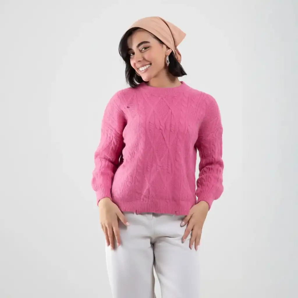 طرحدار بودن بافت (که میتواند طرحهای هندسی، جناغی، یا بافتهای ظریف دیگر باشد) این بلوز را از مدلهای ساده متمایز ساخته و جلوهای شیک و برجسته به آن میبخشد. این بلوز بافت با تنخور متناسب و طرح جذاب خود، به راحتی با شلوار جین یا لگینگهای زمستانی ست میشود و برای استفاده روزمره یا دورهمیهای دوستانه کاملاً مناسب است.